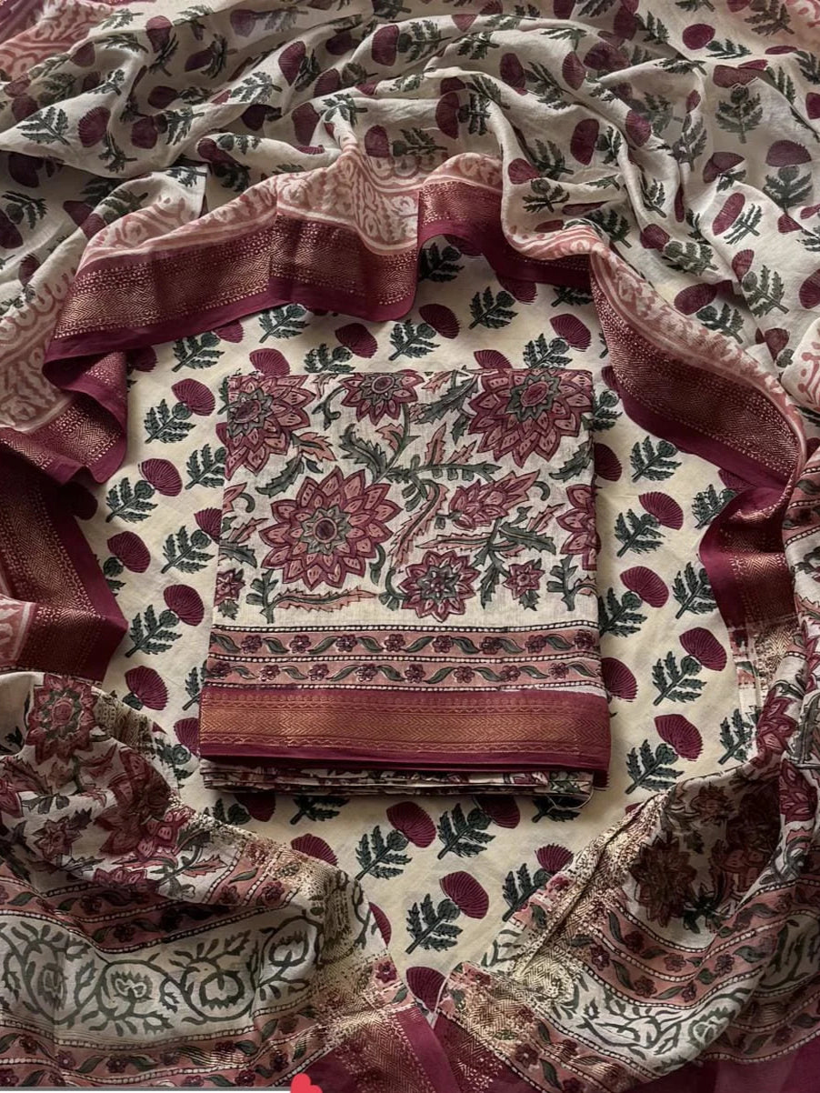 Handblock Printed Maheshwari Silk Salwar Suit Sets